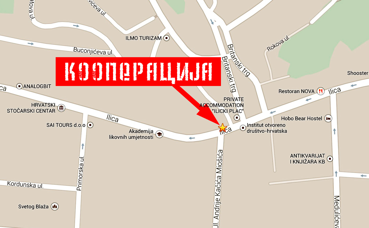 KOOPERACIJA’s basic strategy is the occupation of temporarily free space dispersed throughout the urban landscape and exhibiting via a chain of blitzkrieg events. The desired effect is a constructive dialogue regarding the re-questioning of the critical positions in art and producing a favorable environment for a free exchange of ideas, experience and freedom of expression.