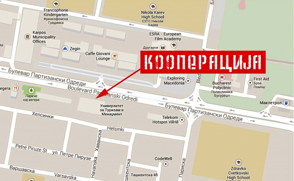 KOOPERACIJA wishes to thank University of Tourism and Management in Skopje for putting the space at our disposal and to Mile Stanishkovski Stanish and Sashko Gramatnikovski for their cooperation.