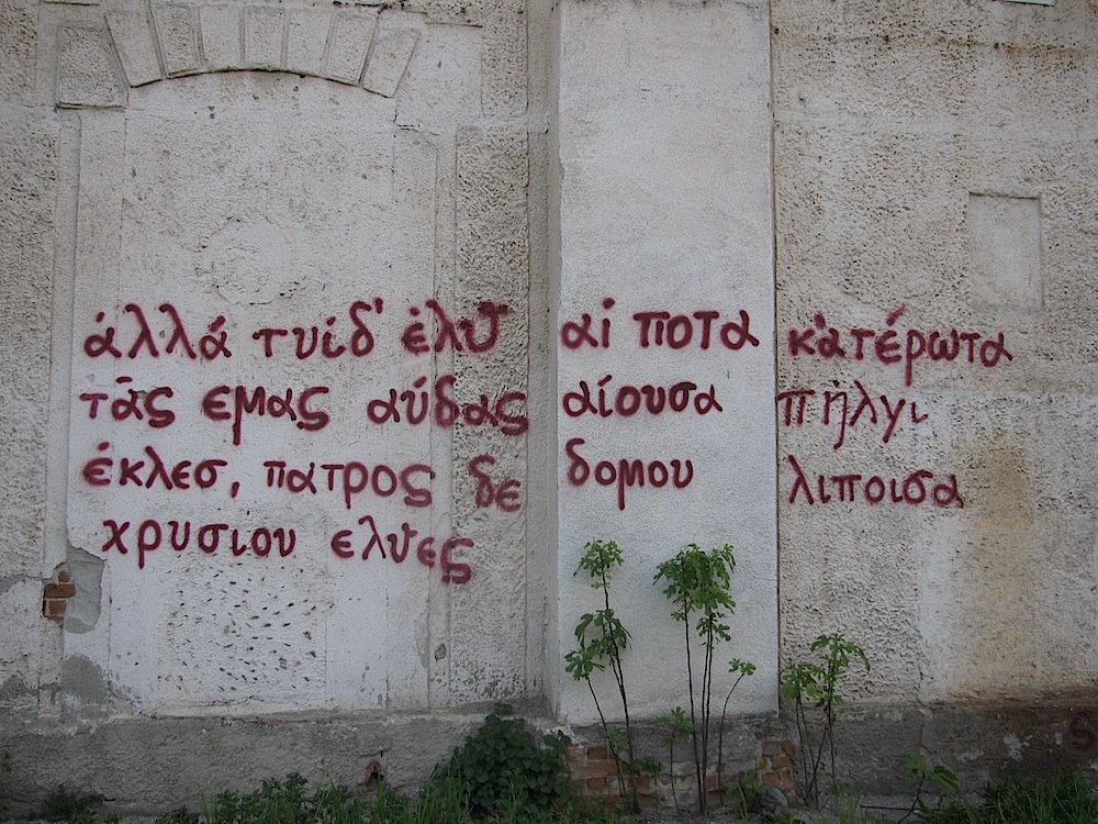 Стихови од Сафо (Sappho) напишани со грчко писмо (стихови од поемата “Hymn to Aphrodite”).