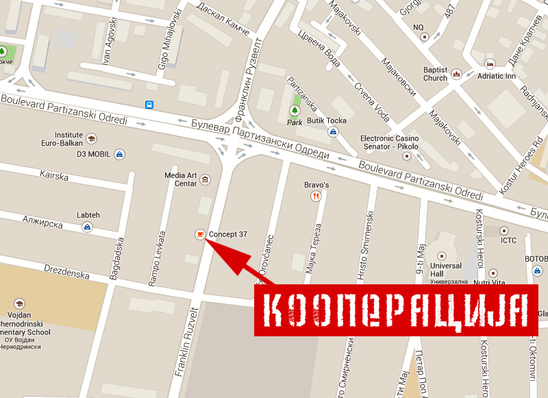 локација: кафе Концепт, ул. Рузвелтова 37, Скопје