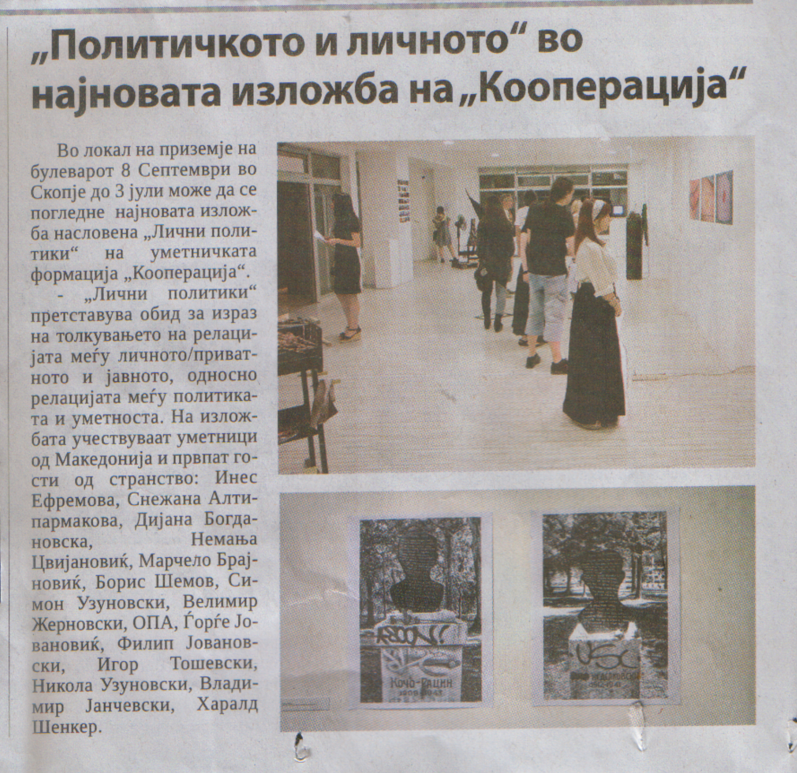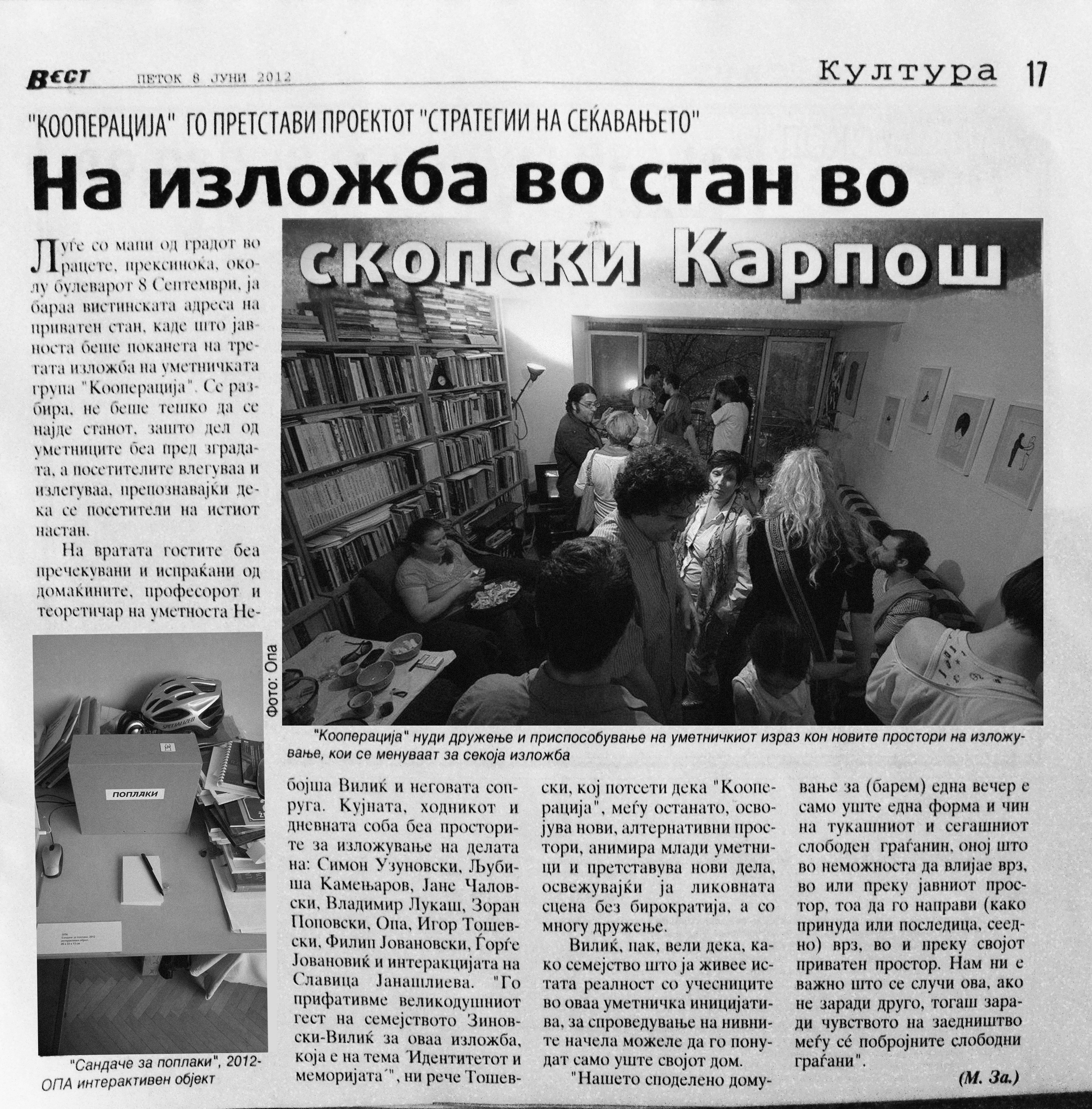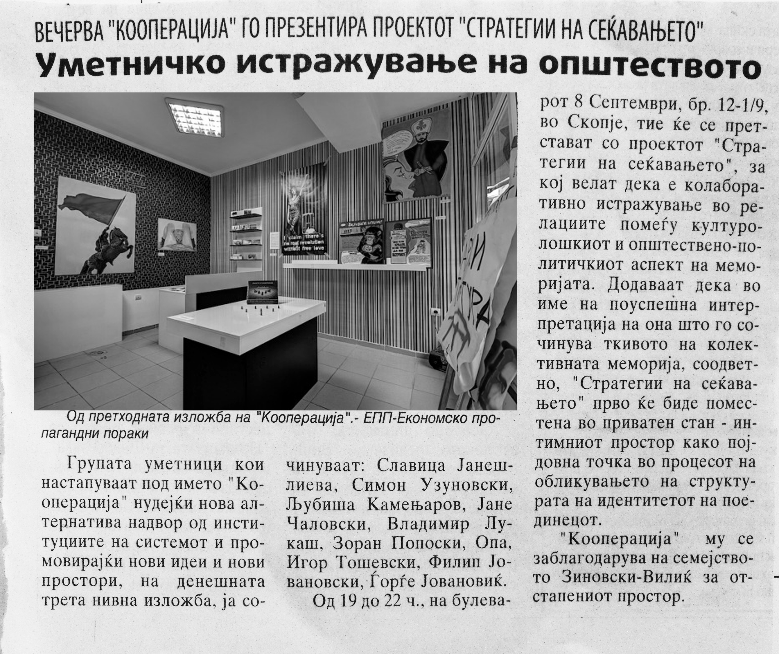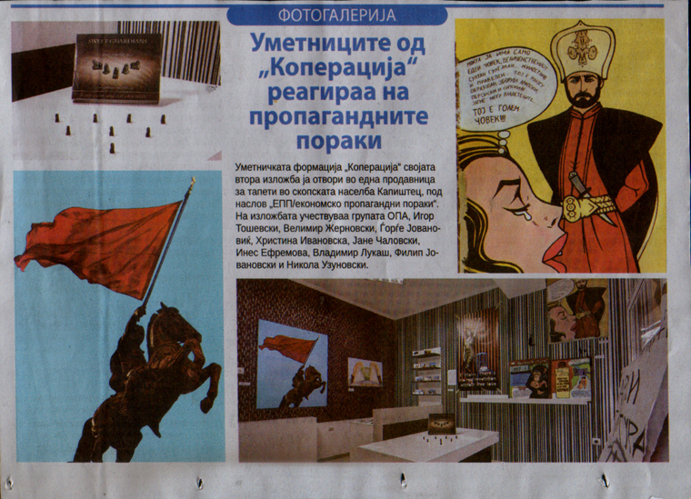 КООПЕРАЦИЈА секогаш има потреба од нов изложбен простор. Доколку сакате да го промовирате Вашиот неотворен деловен простор, салон, магацин, стан или сакате да ја поддржите уметноста на било кој начин, КООПЕРАЦИЈА е тука за Вас