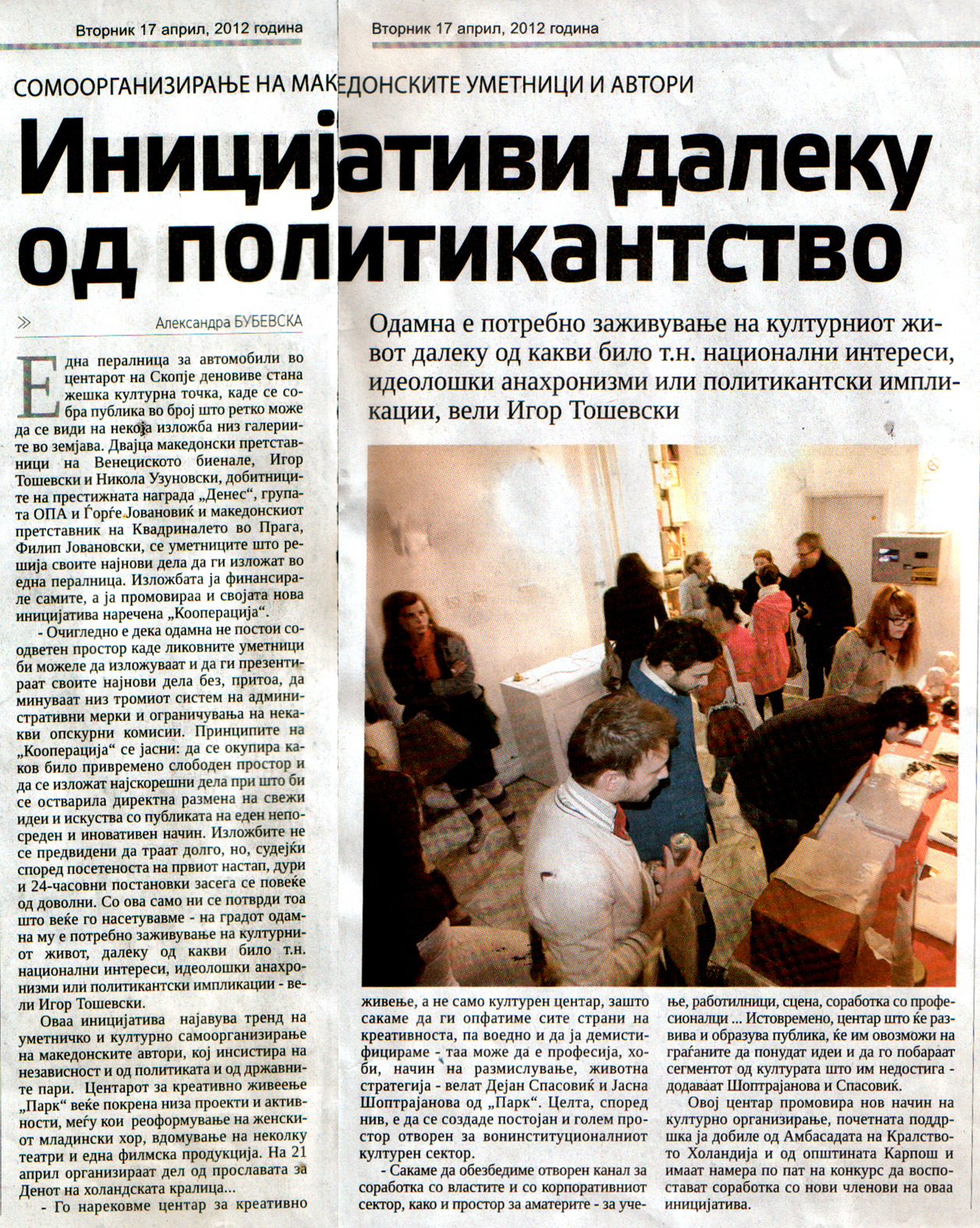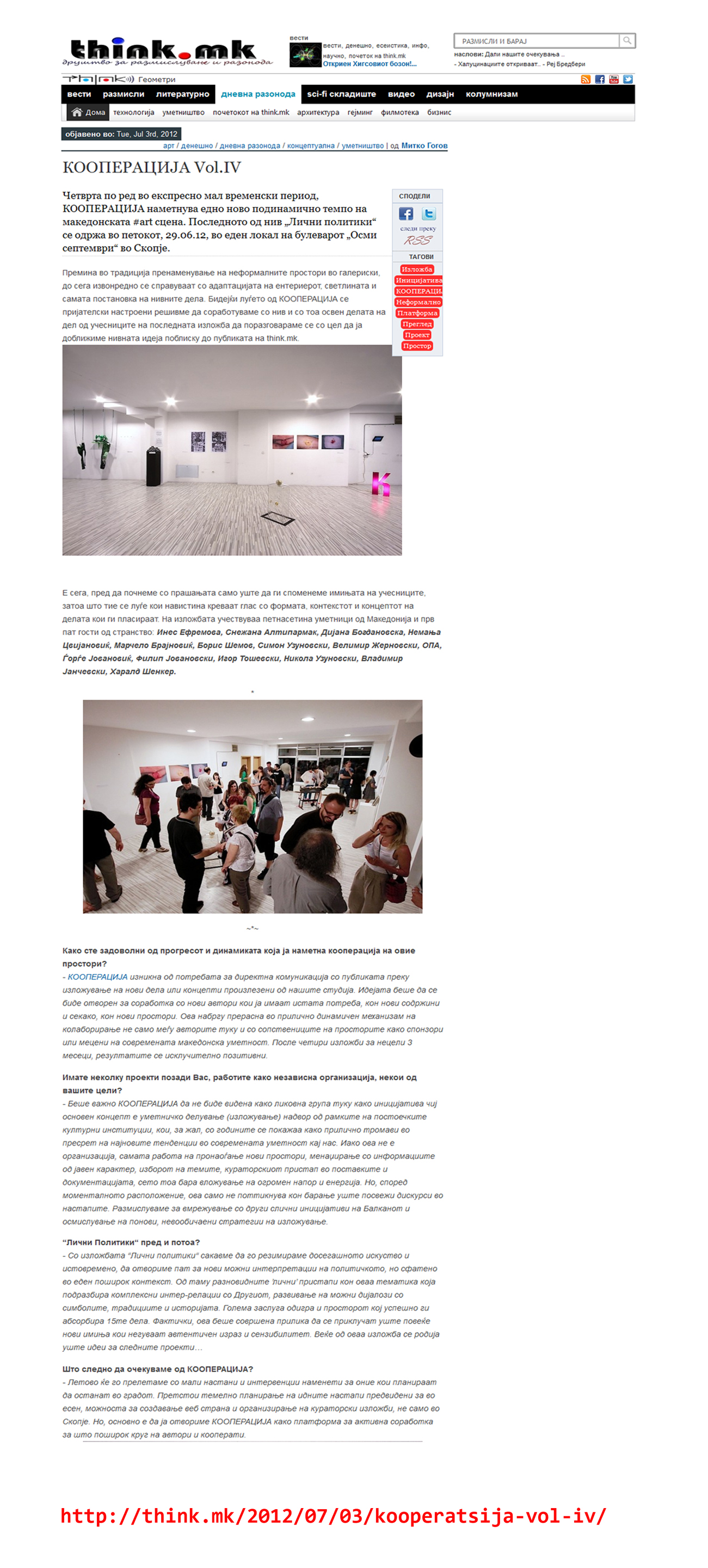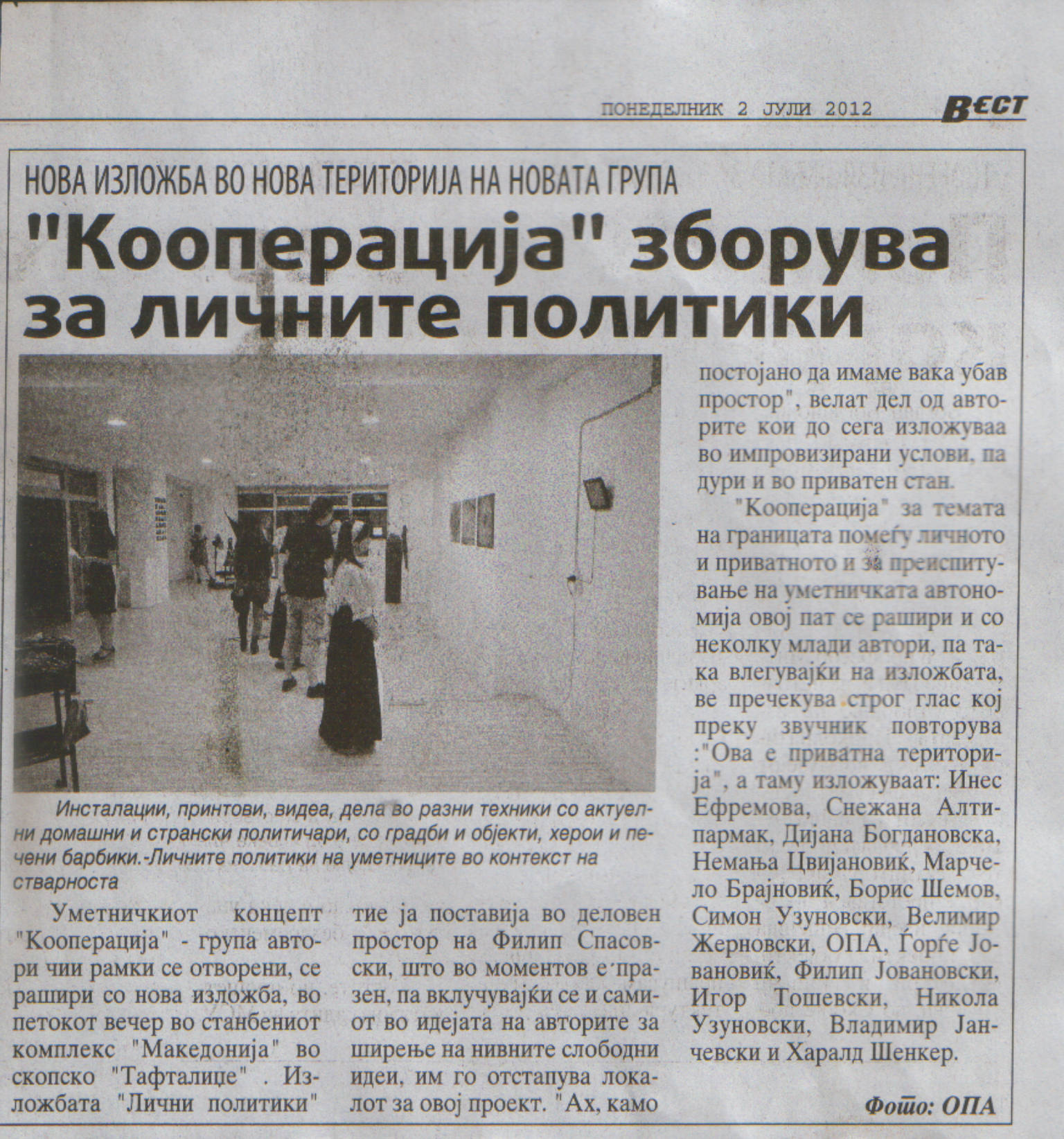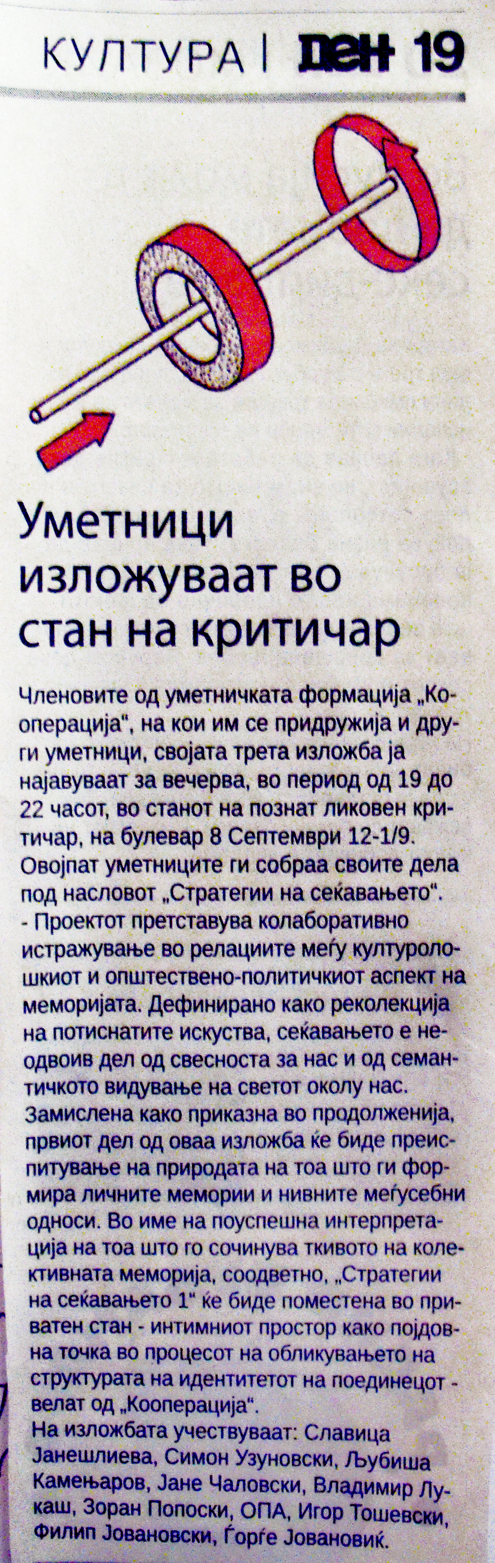 КООПЕРАЦИЈА секогаш има потреба од нов изложбен простор. Доколку сакате да го промовирате Вашиот неотворен деловен простор, салон, магацин, стан или сакате да ја поддржите уметноста на било кој начин, КООПЕРАЦИЈА е тука за Вас